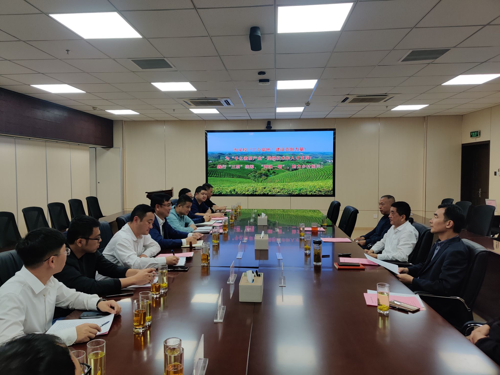 10月27日,广西苍梧县委书记覃学海一行到访实验室,实验室主任宛晓春与之座谈,双方就苍梧县的茶产业发展情况、六堡茶的种质资源开发,市场拓展及品牌建设进行了交流。