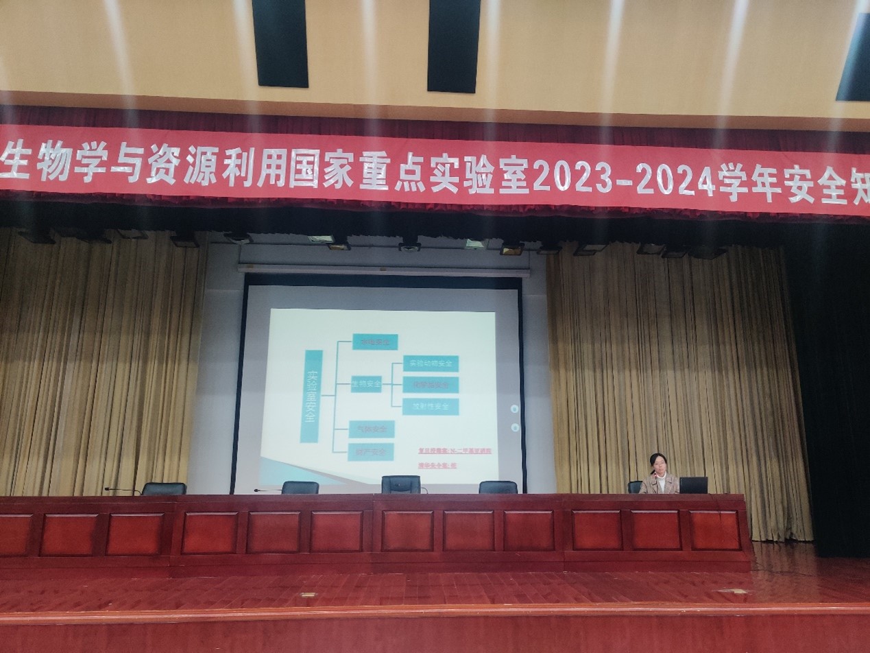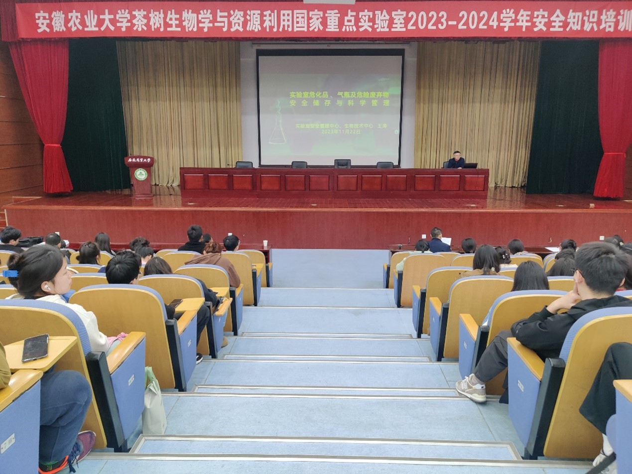为使实验室新生了解实验室规范和注意事项,理解和掌握实验室安全知识,提高实验室安全保障。11月22日下午,我室联合校实验室安全管理中心、保卫处,在图书馆第一报告厅举办了2023-2024学年实验室安全知识培训会。生物技术中心主任王涛,保卫处副处长何兵、实验室常务副主任韦朝领参加了会议。实验室新进硕、博士研究生共计180余人参加了培训会。会议由实验室专职副主任刘广金主持。