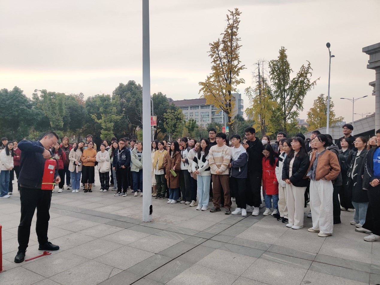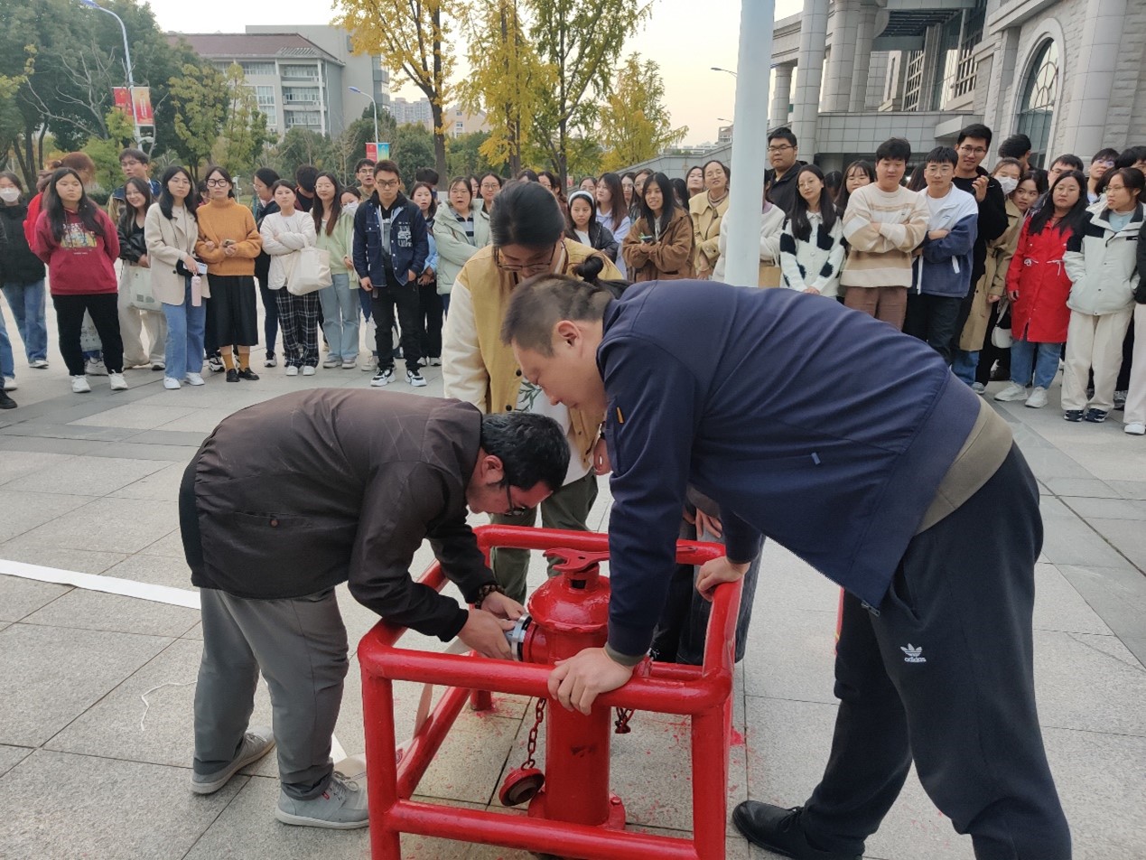 保卫处何兵老师通过具体的火灾事故案例讲述了各类消防器材的使用、火灾事故的应急处置等知识,此外,保卫处的老师们还现场演示了灭火器、消火栓内水枪水带的使用。