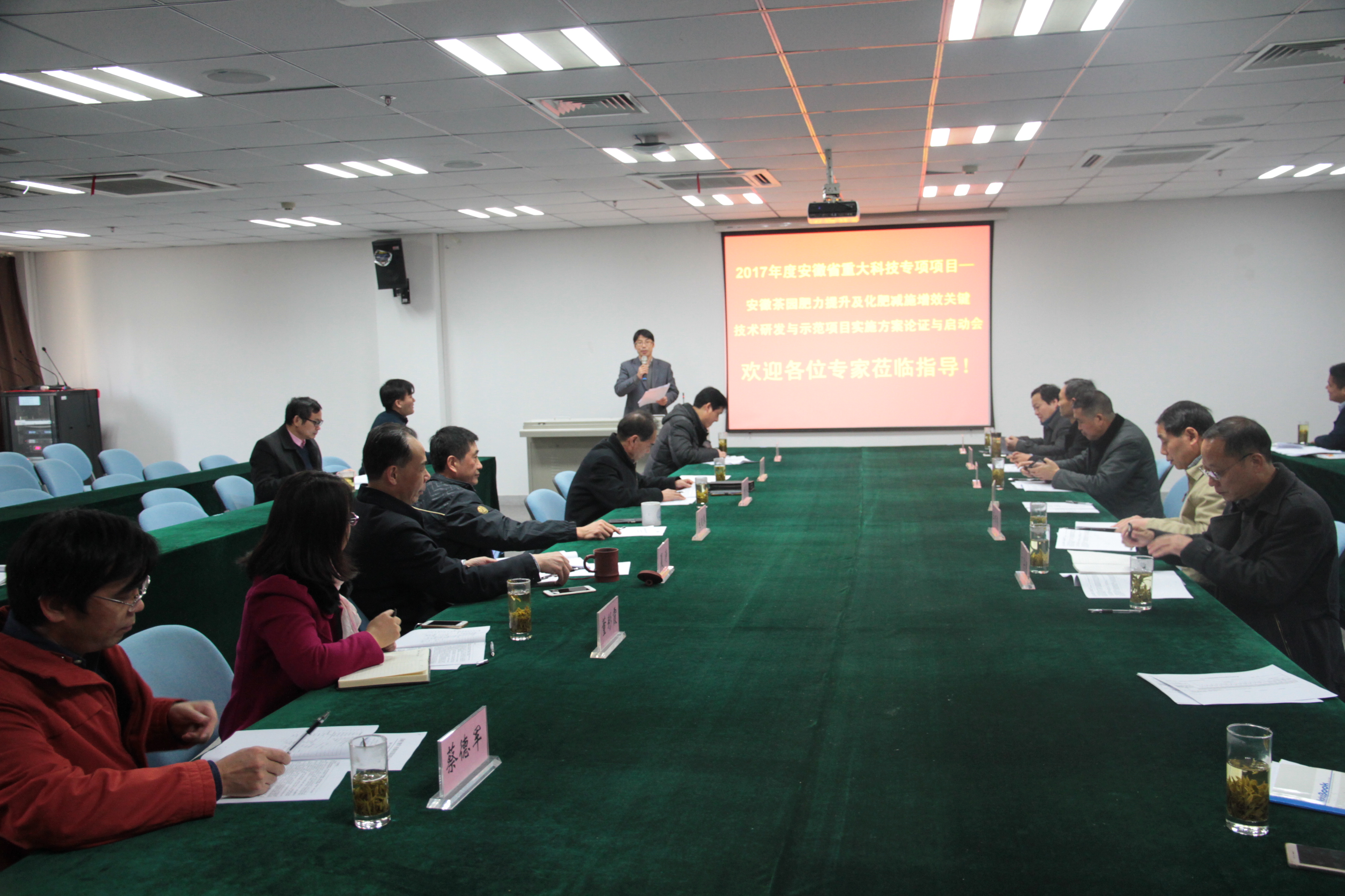 11月26日,由我室承担的2017年度安徽省重大科技专项—“安徽茶园肥力提升及化肥减施增效关键技术研发与示范”实施方案论证及启动会,在我校生物科技楼241会议室召开。论证专家组由南京农业大学董彩霞教授、安徽省农委土肥总站胡芹远高级农艺师、安徽省科技厅厅长宛晓春教授、我校副校长夏涛教授、我校茶与食品科技学院院长张正竹教授、校科技处蔡德军副处长、资源与环境学院章力干教授等七位专家组成。论证会由董彩霞教授主持。