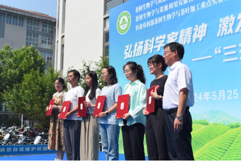 茶与食品科技学院党委书记唐红萍、院长李大祥分别首届实验室优秀科普作品颁发了荣誉证书。