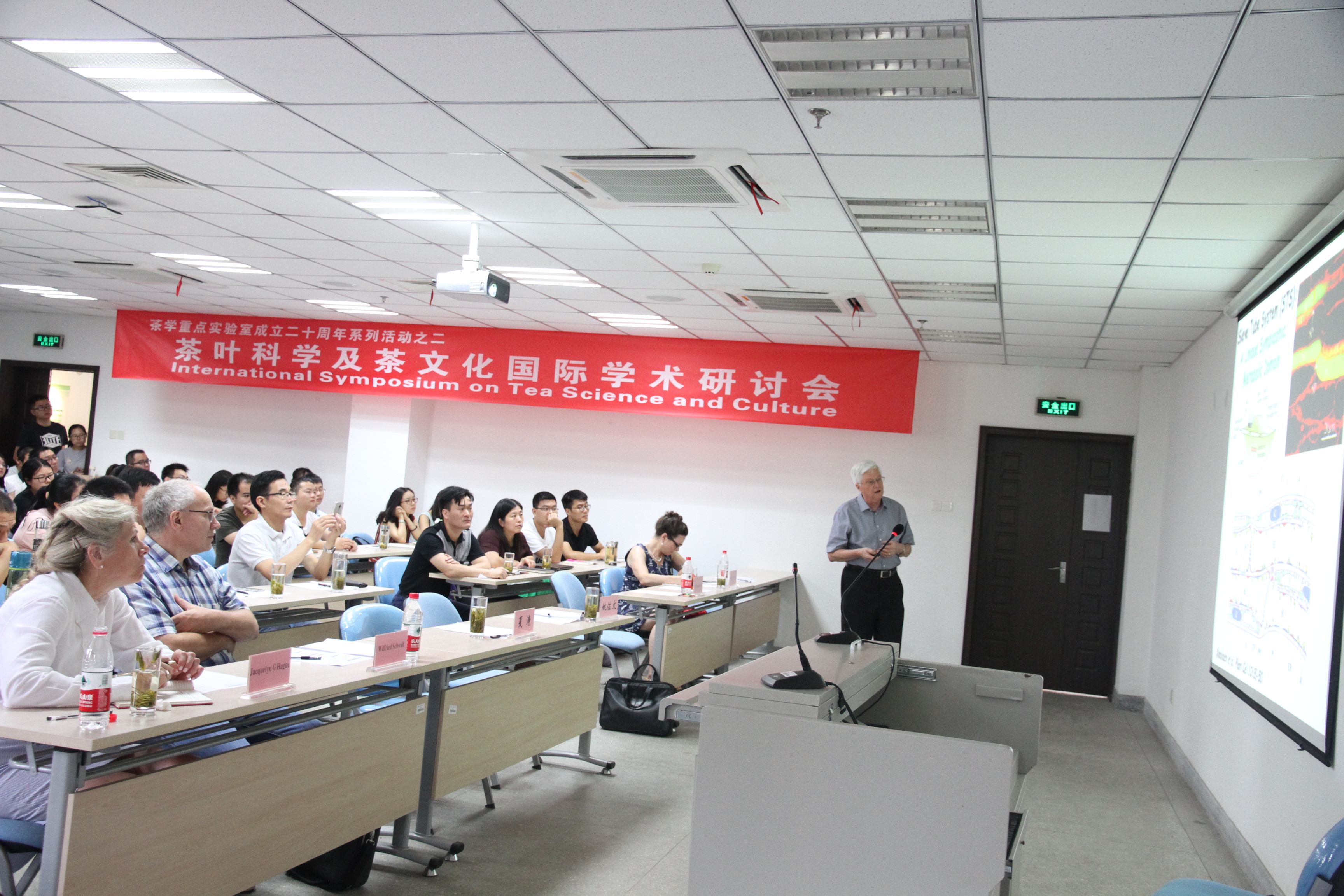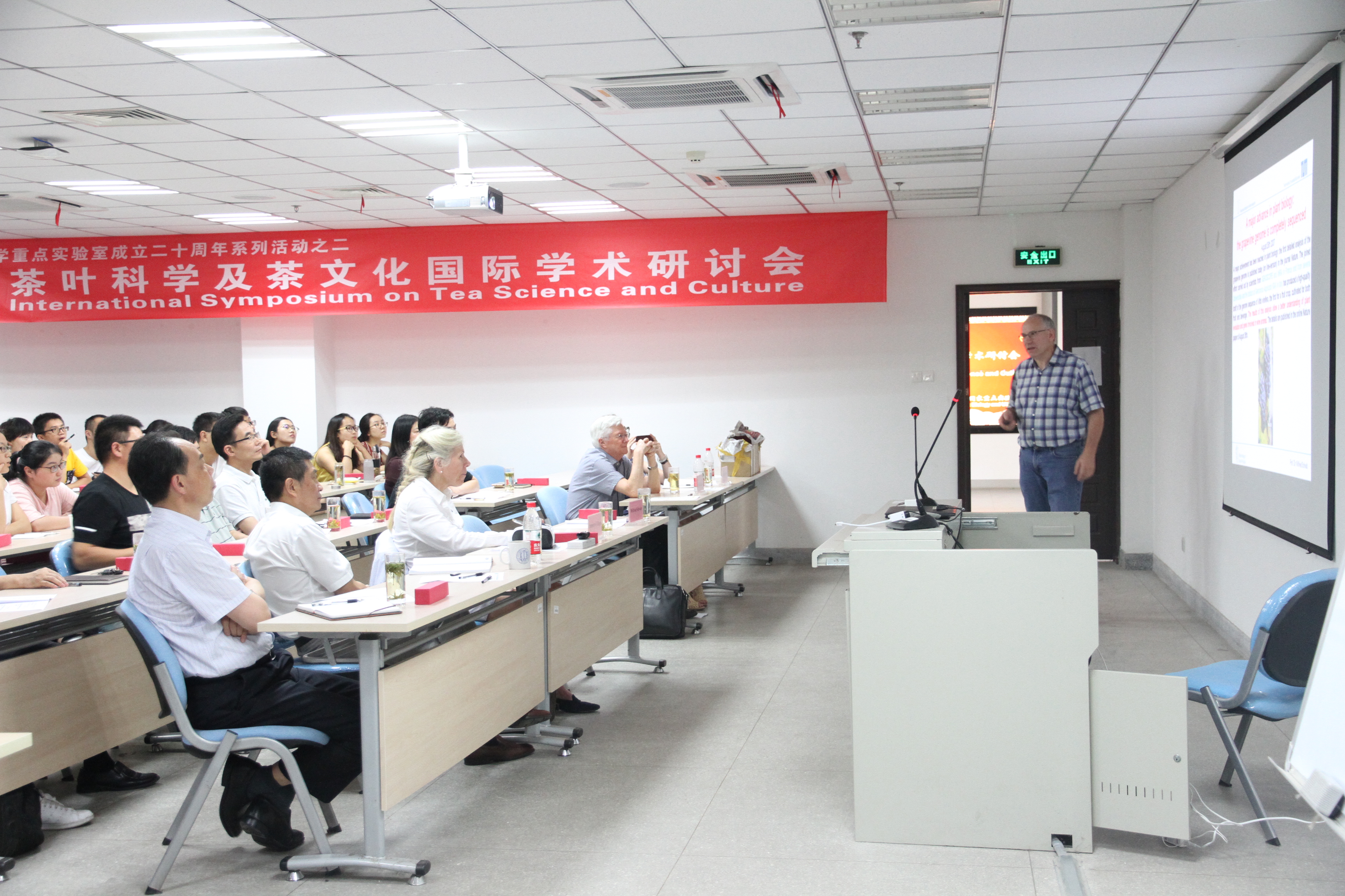 8月14~15日,由我室主办的“茶叶科学及茶文化国际学术研讨会”在生物科技楼241会议室隆重召开。安徽省科技厅厅长、我室主任宛晓春教授,夏涛副校长、姚佐文副校长等领导出席了开幕式。美国加州大学(戴维斯分校)植物生物学教授、法国科学院院士William J Lucas博士、化学系教授Jacquelyn G Hague博士、Global Tea Initiative (GTI) 主任Katharine P Burnett博士以及德国慕尼黑工业大学教授Wilfried Schwab博士受邀作大会专题报告。