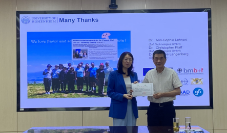 7月14-15日,德国霍恩海姆大学(Universität Hohenheim)风味化学系主任张燕燕教授应邀到访实验室,与实验室师生进行深入的学术交流并以“Biosynthesis of flavor by basidiomycota provides new insights into food innovation – case studies starting from “basidiodrinks”为题向同学们奉献了一场精彩的学术报告。