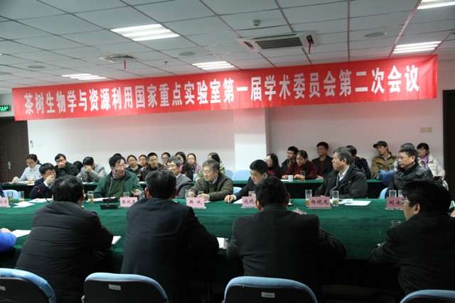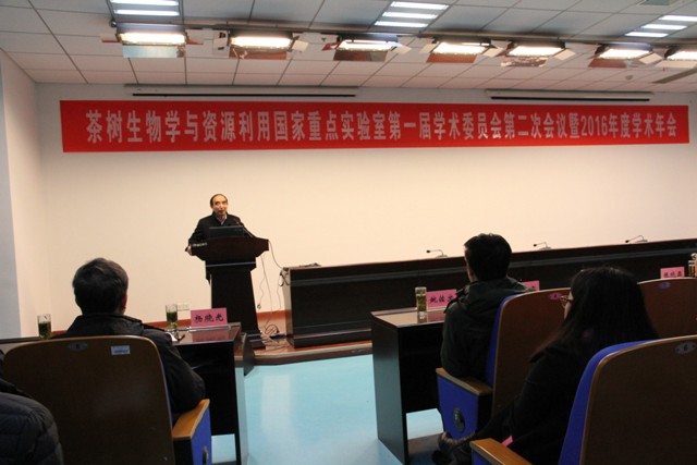 2017年1月7日,茶树生物学与资源利用国家重点实验室“第一届学术委员会第二次会议暨2016年度学术年会”在生物科技楼441隆重举行。实验室学术委员会主任委员陈宗懋院士(中国农业院茶叶研究所),副主任委员陈晓亚院士(中科院上海生命科学研究院植物生理生态研究所)、李家洋院士 (中国农业科学院)和韩斌院士(中国科学院国家基因研究中心),委员梁月荣教授(浙江大学)、杨晓光研究员(中国疾病预防控制中心)、刘永胜教授(合肥工业大学)、尹佟明教授(南京林业大学)和宛晓春教授(安徽农业大学),安徽农业大学程备久校长、夏涛副校长和姚佐文副校长应邀出席。程备久校长在开幕式上致欢迎词。实验室各PI研究团队负责人、团队成员和研究生与博士后列席会议。