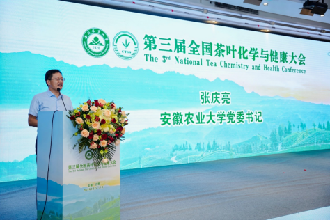 张庆亮在致辞中对参加本次会议的各位专家学者表示热烈的欢迎和真挚的感谢。他介绍了学校的发展历程,分享了学校在学科建设、人才培养、科技创新等方面取得的成绩。他表示,希望以本次大会为契机,共同探讨茶叶化学与健康领域的前沿问题,交流最新的发展趋势,为推动以茶学领域为核心的相关学科协同创新与产业的蓬勃发展做出更大的贡献。
