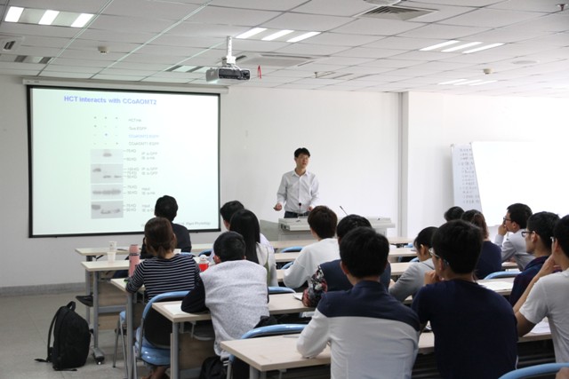 4月24日,美国密歇根理工大学植物学家唐贵良教授和山东大学“齐鲁青年学者”王官峰教授,在生物科技楼242报告厅分别作了题为“A Resource for Inactivation of MicroRNAs Using a Short Tandem Target Mimic (STTM) Technology in Model and Crop Plants”和Lignin biosynthesis pathway plays important roles in maize disease defense response的学术报告。实验室相关PI及其团队成员、研究生与博士后共计60余人听取了报告。会议由实验室常务副主任韦朝领教授主持。