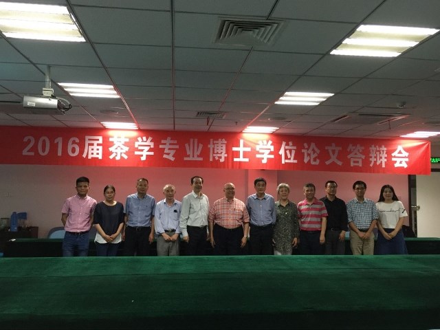 在实验室工作期间,两位教授共计为实验室和茶学专业本科生作了四场学术报告,还参加了2016届茶学专业博士学位论文答辩会、第九届海峡两岸暨港澳茶业学术研讨会。在茶学博士生答辩环节,为使实验室师生早日熟悉并融入国际化环境,何其傥教授建议答辩委员会采用美国博士答辩组织形式并被现场采纳,使本届答辩会耳目一新。何教授严谨的治学态度和轻松的表达方式也感染了在场的每位人。在学术报告会中,两位教授综述了大量国际前沿研究文献,同时结合自己的研究结果,系统地介绍了茶叶化学与健康领域的最新研究进展,并对未来研究趋势进行了展望;报告会中,两位教授还结合自身研究经历,向参会的青年教师和学生提出了众多科研建议,并对师生关心的研究热点问题进行了现场答疑。