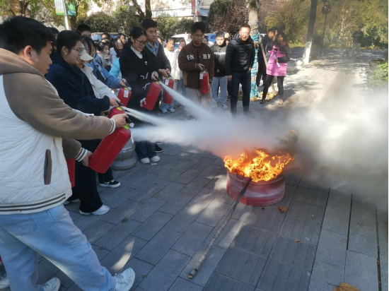 学校消防维保单位的陆勤琢技术员为同学们讲解了各类消防器材的使用、火灾事故的应急处置等知识,并邀请同学现场演示了灭火器的使用。