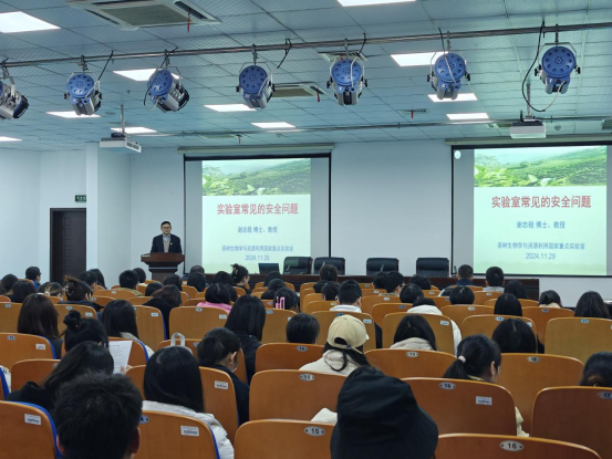 本网讯 11月29日上午,我室举办了2024-2025学年实验室安全教育培训。实验室新进硕、博士研究生共计180余人参加了培训会。会议由实验室专职副主任刘广金主持。