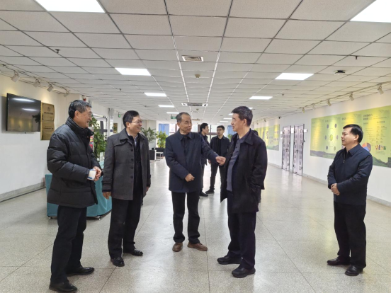 本网讯 1月14日,安徽省政协党组副书记、副主席孙云飞一行来校调研茶树种质创新与资源利用全国重点实验室并看望专家。校党委书记张庆亮、全国重点实验室主任宛晓春陪同调研。