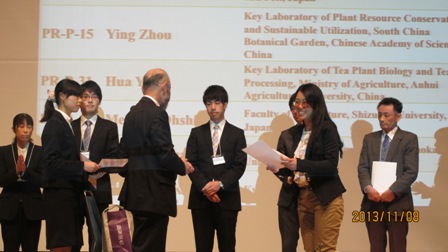 2013年11月6日至8日,“第五届国际茶叶科学与文化会议(The international conference on O-CHA(tea) culture and science) ”在日本静冈会展中心隆重召开,来自中国、美国、德国、意大利、韩国、印度、斯里兰卡、新加坡、香港和日本人等10个国家和地区共240余名代表参加会议。实验室主任宛晓春教授、副主任韦朝领教授以及实验室年轻博士等一行8人参会。