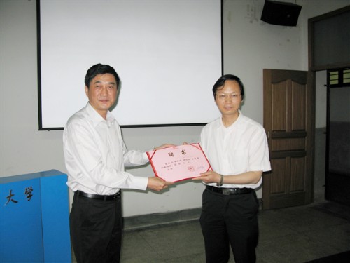学术报告前,举行了一个简短仪式,聘请漆小泉博士和中国科技大学向成斌博士为我校客座教授。会后,在宛晓春校长陪同下,漆小泉博士一行参观了实验室。