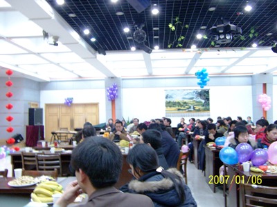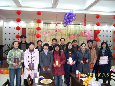 会后,与会老师和学院全体研究生参加了由重点实验室研究生自己组织的 “茶叶生物化学与生物技术重点实验室2007新年师生联欢会”。联欢会在合肥高校学生公寓小区服务中心五楼多功能厅举行,由硕士研究生宋丽和王子龙主持。