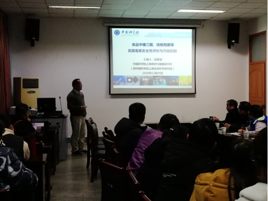 12月3日下午,中国科学院上海营养所武爱波研究员应邀来我室进行学术交流,并作了主题为“食品中重要真菌毒素安全性评价与污染控制研究”的学术报告。报告主要从常见霉菌毒素产生的菌株、各类农副产品及食品原料易污染的类型,镰刀菌毒素的重要合成途径,以及霉菌毒素污染控制方法等几个方面进行了详细的介绍。在此过程中,武爱波研究员重点给大家介绍了隐形霉菌毒素的发现与检测方法,以及对食品安全的潜在危害。