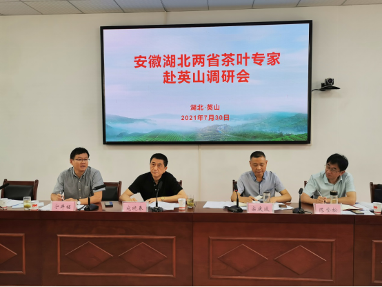 在大别山西南麓的湖北省英山县,湖北省农业农村厅果茶办公室宗庆波调研员,湖北省农科院果茶所党委书记陈登松研究员,英山县农业农村局局长何青松陪同考察。考察组先后走访当地名优茶、眉茶以及茶叶精制加工企业,并实地走访了多处茶园。在座谈会上,宁井铭教授、宛晓春教授先后对英山县茶叶发展提出建议,尤其指出,当地具有非常好的茶叶资源,要进一步调整产品结构,提高产品效益,使茶产业在乡村振兴事业中发挥更大作用。