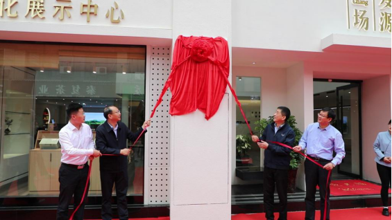 本网讯 5月13日,安徽农业大学岳西县茶产业研究院揭牌仪式在岳西县罗源场茶文化展示中心举行,实验室主任宛晓春教授、宁井铭教授、岳西县委书记江春生、县长何斌共同为“岳西茶产业研究院”揭牌。江春生分别为宛晓春教授颁发安徽农业大学岳西茶产业研究院名誉院长聘书,为宁井铭教授颁发安徽农业大学岳西茶产业研究院院长聘书。