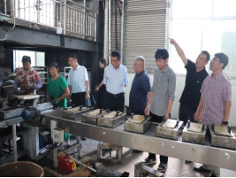 宛晓春教授一行首先在安徽霍山县汉唐清茗茶叶有限公司、安徽大别山黄茶集团有限公司两家茶企详细调研,仔细询问了解茶企在黄茶生产、销售、企业用工、加工技术等方面的情况,并在企业负责人介绍下考察了黄大茶生产车间,对不同规格黄茶进行了审评鉴定。