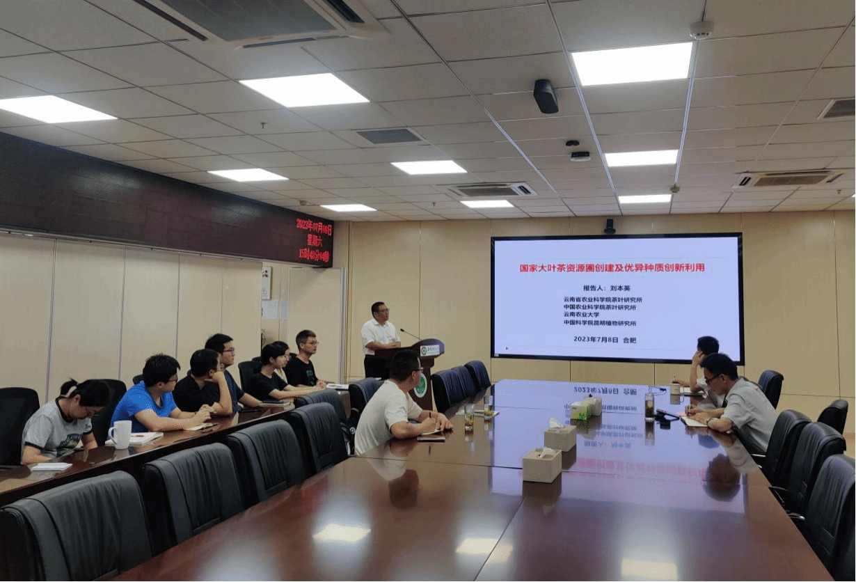 7月8日,云南省农业科学院茶叶研究所刘本英研究员应邀来我室进行学术交流,刘本英研究员以国家大叶茶树资源圃创建及优异资源创新利用为题,向我室师生作了精彩的学术报告。