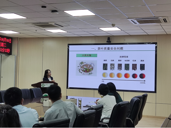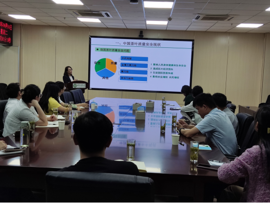 报告主要从“中国茶叶质量安全现状”、“茶叶质量安全问题”和“茶叶中污染物残留与控制”三方面进行了介绍,详细分享了团队在茶叶中污染物检测技术及控制技术创新方面的最新研究进展,并与在场的老师和学生们进行了深入讨论,报告为国重实验室的茶叶质量与安全研究方向提供了重要的参考思路。