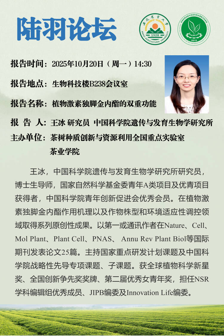 陆羽论坛——10月20日(周一)王冰学术报告
