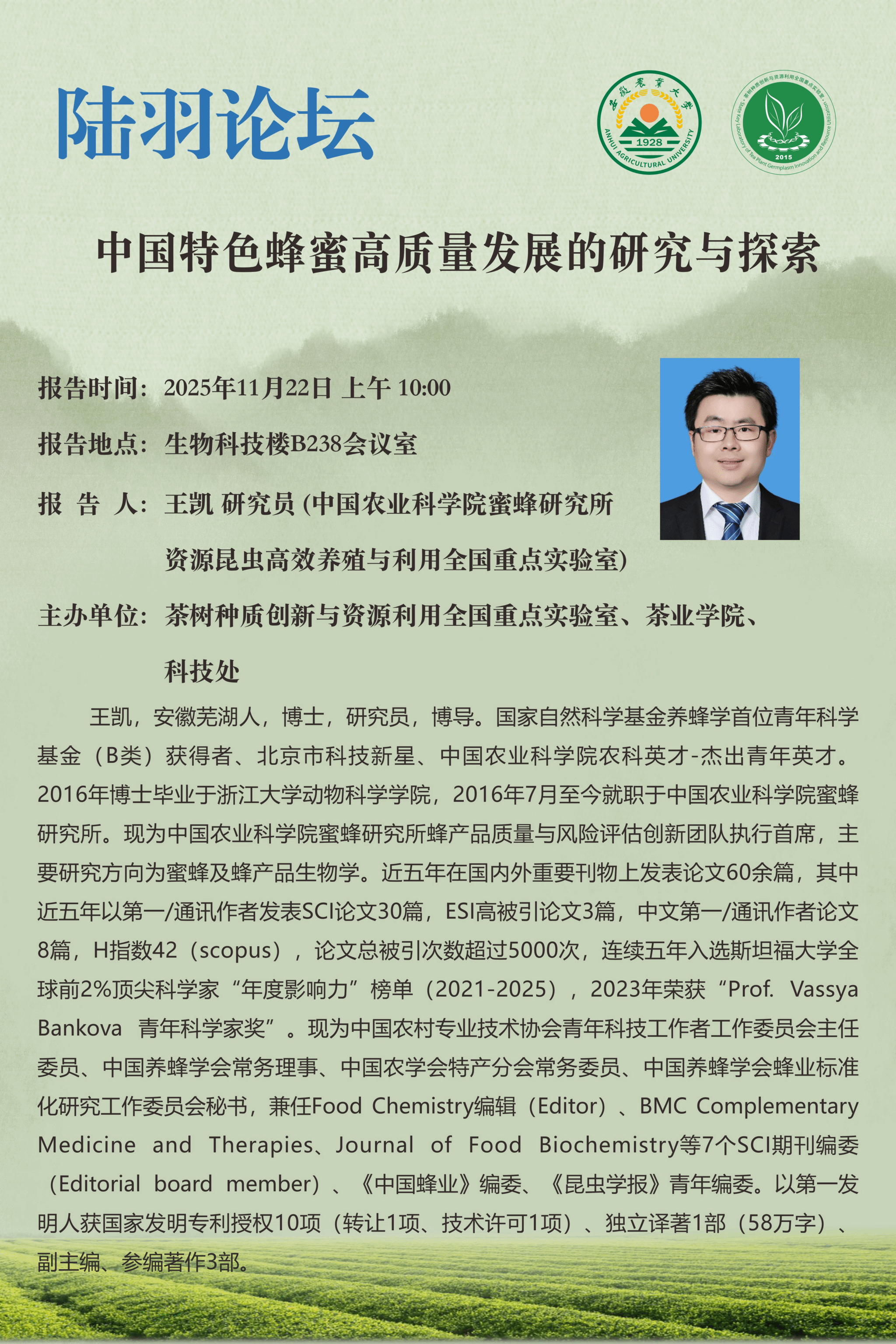 陆羽论坛——10月22日(周六)王凯学术报告