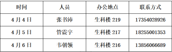 值班时间:上午——8:30 ~ 11:30;下午——2:30 ~ 5:30。