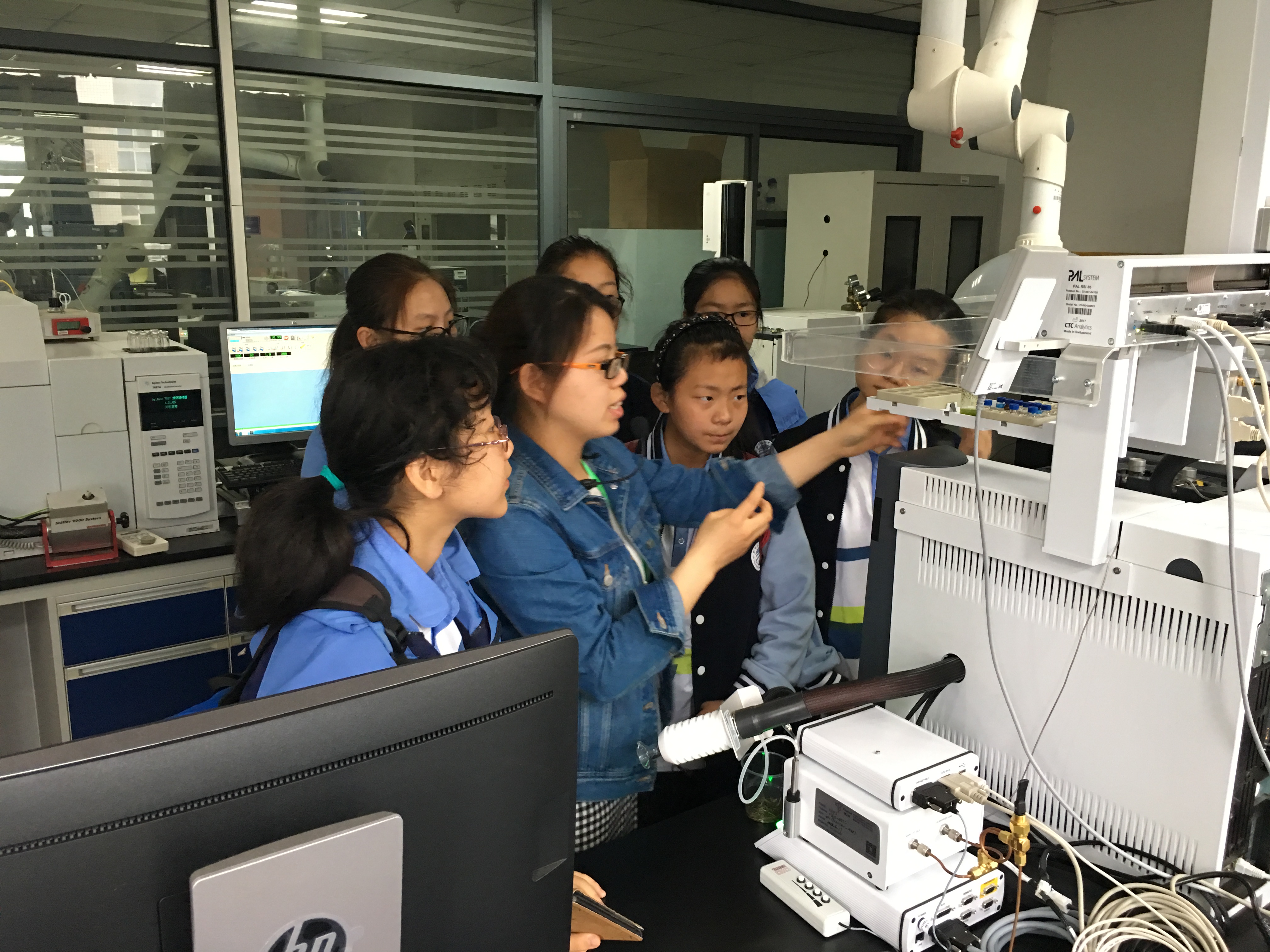 在对外开放的实验室公共平台上,我室管理人员为参观者演示了茶叶的科学研究过程及利用精密仪器设备(如液相色谱仪、气质联用色谱仪等)对茶叶进行成分检测、品质分析和分离鉴定等实验内容,使来访者体会着茶叶科技发展的先进与神奇。