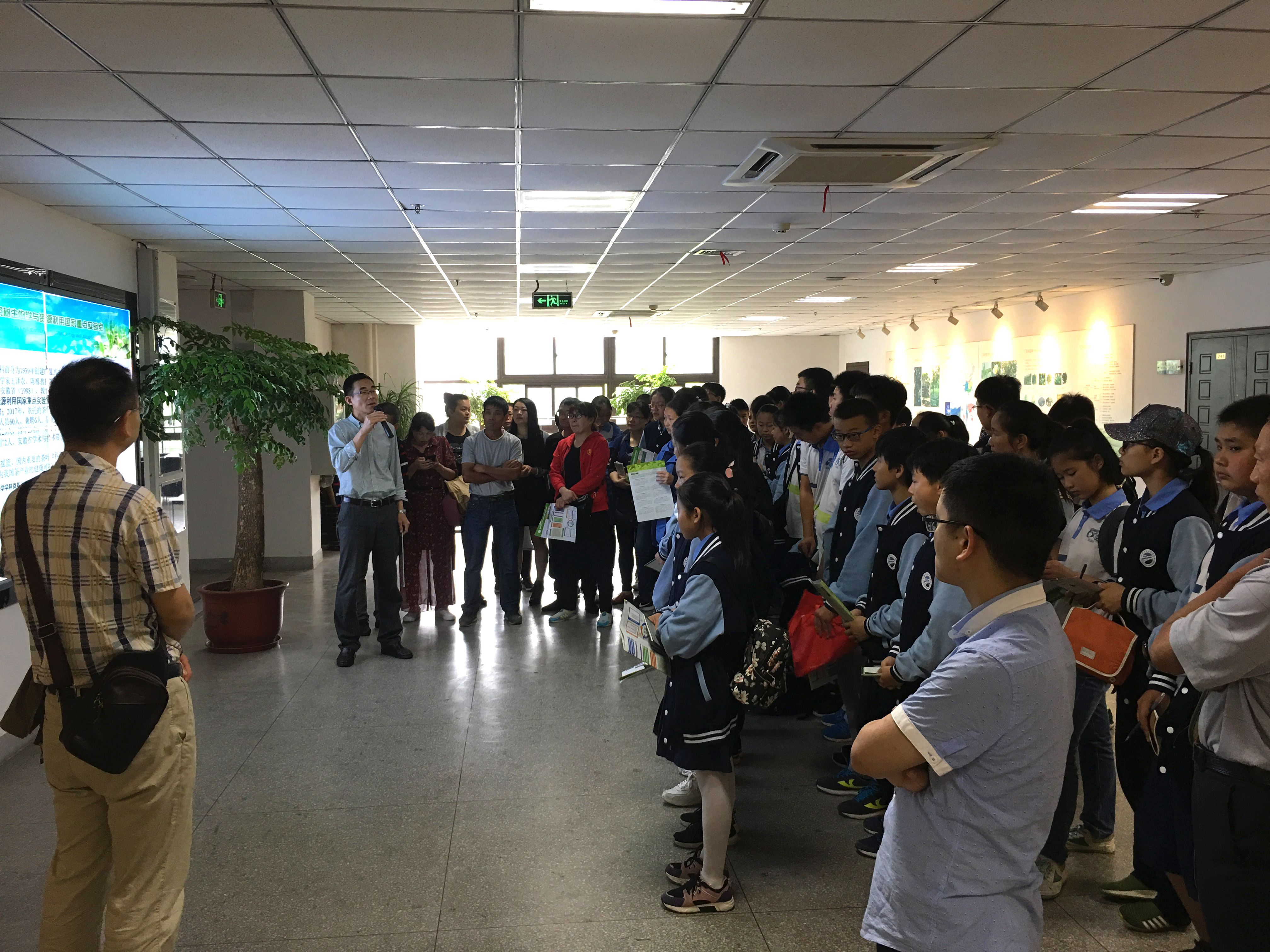 活动中,我室常务副主任韦朝领教授、专职副主任沈周高副研究员及实验室相关管理人员向来访者介绍了实验室的发展与取得的成绩、茶树的起源、茶叶的分类方法、茶叶的加工过程、茶的综合利用、茶深加工产品以及茶的健康功能等一系列科普知识。