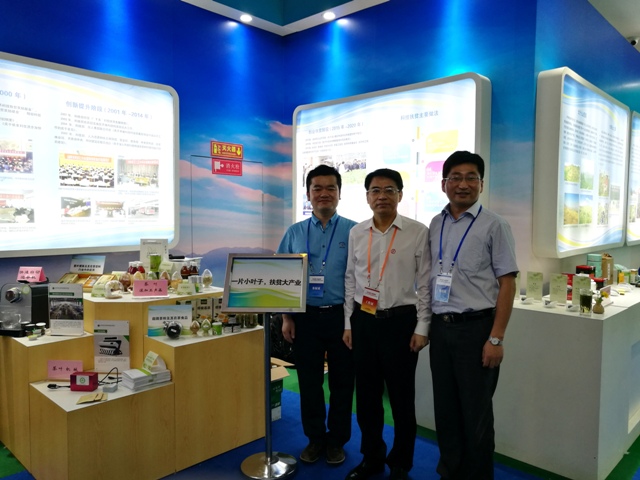 为做好此次参展,我室以“茶叶——一片小叶子,扶贫大产业”为主题,精心设计了涵盖中国茶叶在世界茶产业中的地位与影响、茶产业在中国山丘区农民脱贫致富中的作用、安徽茶产业扶贫成效、茶叶科普知识、我校振兴茶产业的主要做法、茶学国家重点实验室主要技术成果的文字宣传材料。在实物展台上,重点展示了我室自主研制的茶叶机械、茶叶深加工系列产品,陈列了六大基本茶类的干茶实物样与各类茶制品等。最新的茶叶科技成果及异彩纷呈的茶制品,吸引了众多参观者驻足停留、倾心听取介绍,也引起了众多新闻媒体的广泛关注。中国科普网以“科技创新让小茶叶成扶贫大产业”为题,在网站首条刊发了对我室参展项目的专题采访。