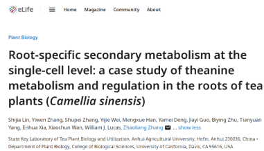 近日,安徽农业大学茶树生物学与资源利用国家重点实验室在eLife上在线发表了题为“Root-specific secondary metabolism at the single-cell level: a case study of theanine metabolism and regulation in the roots of tea plants (Camellia sinensis)”的研究论文。论文首次报道了木本植物根系单细胞转录组图谱;提出茶氨酸与其前体乙胺的合成可能存在空间隔离调控;发现调控茶氨酸的合成的转录因子及其靶基因富集表达的细胞类型不同;鉴定了一个调控茶氨酸合成的新的转录因子CsLBD37。