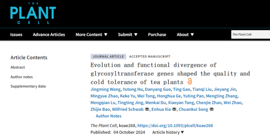 安徽农业大学为第一单位与通讯单位,茶树生物学与资源利用国家重点实验室博士后王婧铭为论文第一作者,宋传奎教授、夏恩华教授和德国慕尼黑工业大学Wilfried Schwab教授为通讯作者。该研究得到国家重点研发计划、国家自然科学基金等项目的资助。