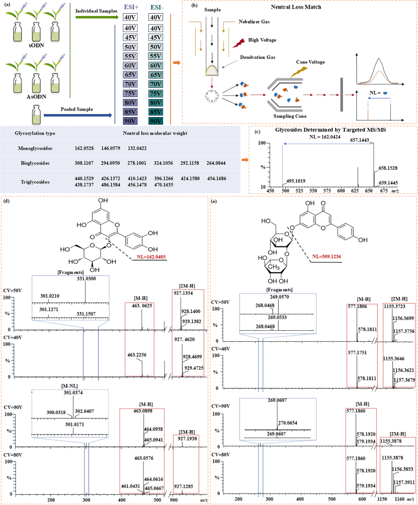 图1基于锥孔电压诱导源内裂解的茶树糖苷特异性代谢组学策略