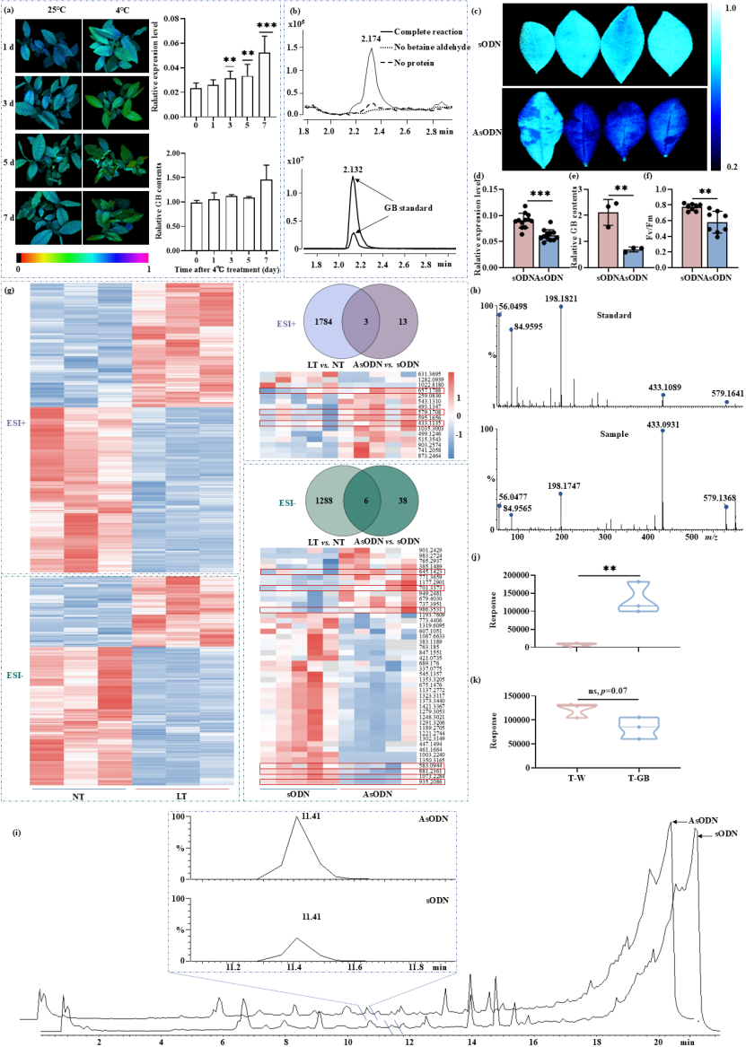 图2糖苷特异性代谢组学与常规代谢组学联合分析发现受GB调节的冷反应代谢物异野漆树苷