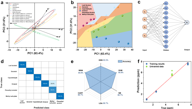 图3. 机器学习算法在挥发性香气物质种类识别和浓度预测中的应用。