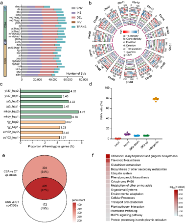 综上所述,本研究通过构建高质量的茶树泛基因组资源,首次在全基因组尺度上系统解析了结构变异对茶树基因表达和关键农艺性状(如风味物质合成、抗病性)的调控网络。研究不仅深化了对茶树驯化历史的理解,而且为未来利用野生资源中的有益等位变异进行分子设计育种,培育高品质、高抗性的茶树新品种提供了重要的基因靶点和理论支撑。