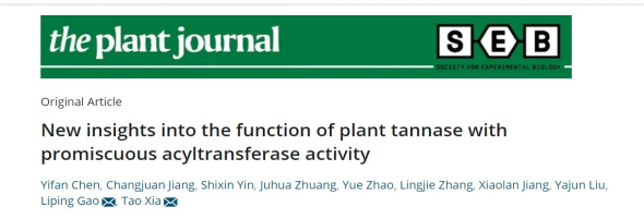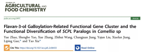2022年12月21日和24日,实验室夏涛课题组在国际植物学权威学术期刊The Plant Journal和农业食品领域权威学术期刊Journal of Agricultural and Food Chemistry在线发表了题为“New insights into the function of plant tannase with promiscuous acyltransferase activity”和“Flavan-3-ol galloylation-related functional gene cluster and the functional diversification of SCPL paralogs in Camellia sp”的研究论文,这是该课题组在茶树等植物中酯型儿茶素、没食子单宁和鞣花单宁的合成代谢方面一系列研究的新成果。文章发现课题组前期鉴定的植物单宁酶(New phytologist,2020)实际上是一类具有混杂的酰基转移酶活性的水解酶类,同时具有催化酯型儿茶素和没食子酰基葡萄糖的水解和合成作用。课题组借助茶树、草莓和杨梅等植物的瞬时基因转化体系证明植物单宁酶具有促进酯型儿茶素和没食子单宁的积累,还发现前期鉴定的参与催化酯型儿茶素合成的丝氨酸羧肽酶样酰基转移酶(SCPL-AT)基因(The Plant Journal,2022)位于一个染色体功能基因簇中,并鉴定了该染色体功能簇中SCPL-AT基因的新功能化和亚功能化的变异。