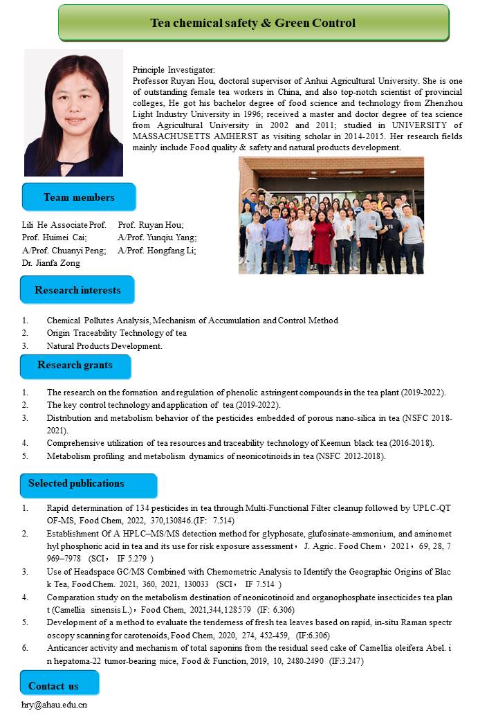 Tea Chemical safety & Green Control (PI: Ruyan Hou)